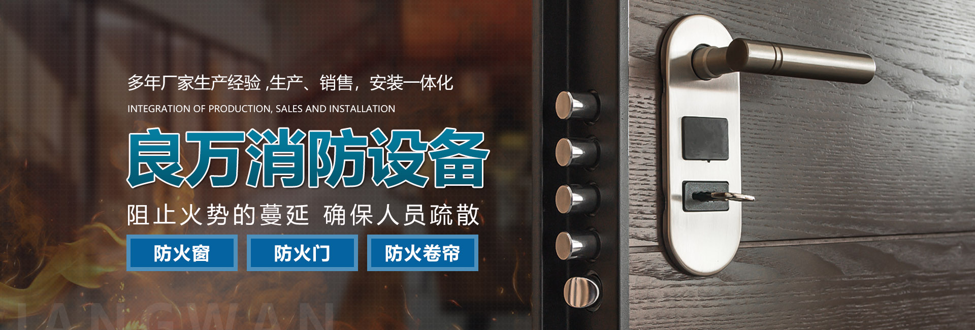 合肥良萬消防設(shè)備有限公司位于合肥市包河工業(yè)園,生產(chǎn)銷售安裝:防火門、防火卷簾門、防火窗等消防安全產(chǎn)品。公司具有研發(fā)、設(shè)計、生產(chǎn)、銷售、及安裝服務(wù)的綜合配套能力。合肥良萬消防設(shè)備有限公司技術(shù)力量強,設(shè)備齊全,產(chǎn)品不斷創(chuàng)新,以信譽立業(yè),客戶滿意是我們永無止境的追求。我們在保證產(chǎn)品質(zhì)量的同時,也十分注重售后服務(wù),保證消防安全產(chǎn)品的正常運行。公司始終堅持誠信為本的企業(yè)宗旨,真誠希望與社會各界新老客戶精誠合作,良萬愿與您攜手共創(chuàng)輝煌!